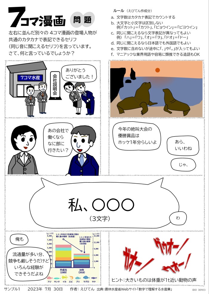 あなたが書いた7コマ漫画や、IDO発行の7コマ漫画のお気に入りネタを、