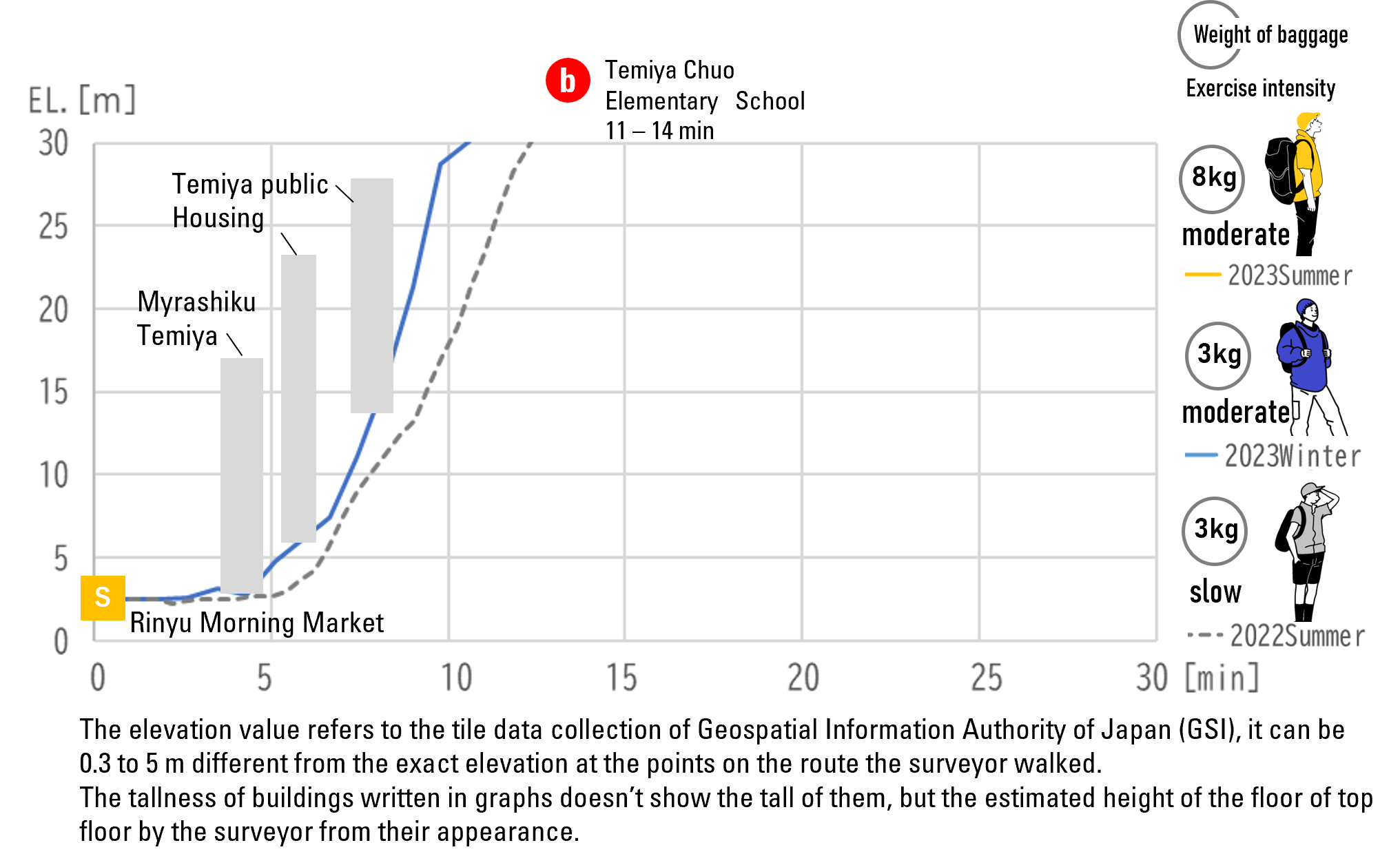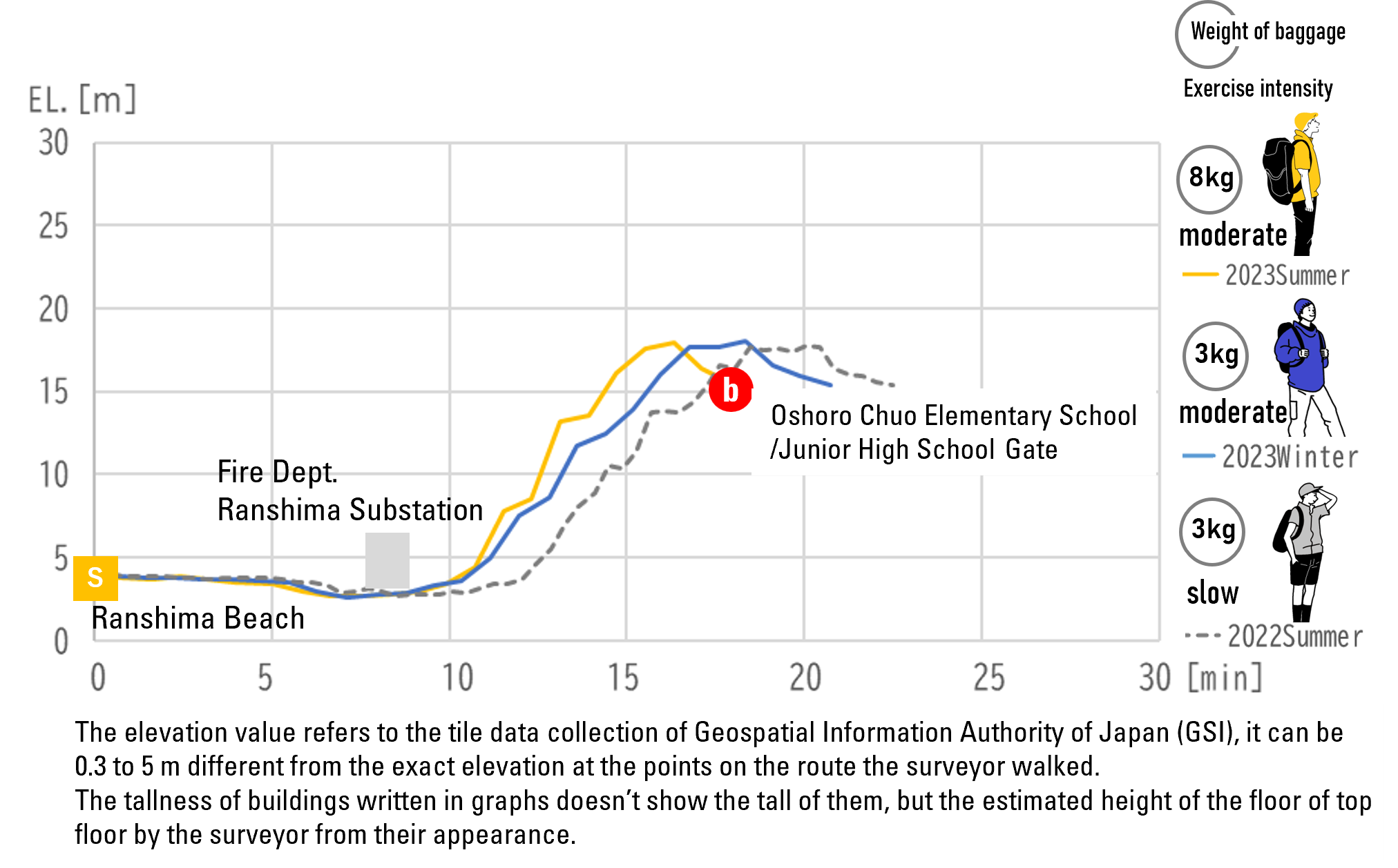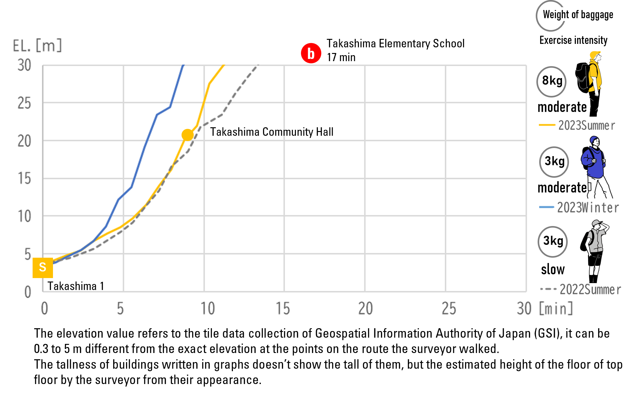 You will get to the gate of Takashima Elementary School in about 17 minutes after the start.