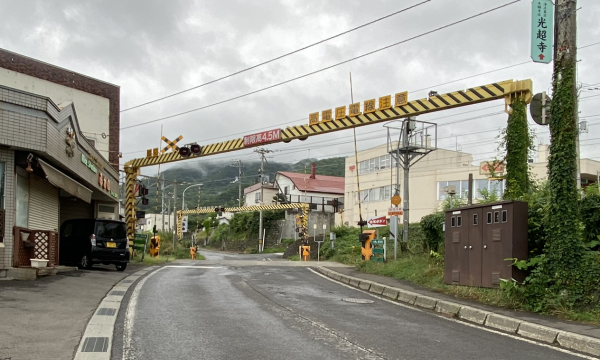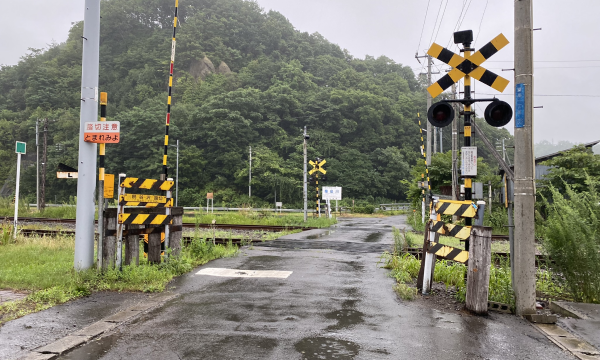 Enter the road on the right side of the torii gate and walk seeing the railroad tracks.