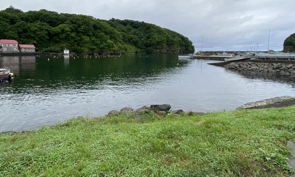 and get a view of part of Takashima Fishing Port from between the houses.