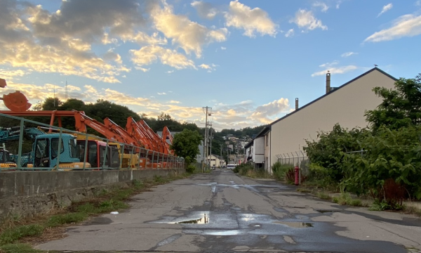Cross the railroad tracks, turn right, and go up the slope.