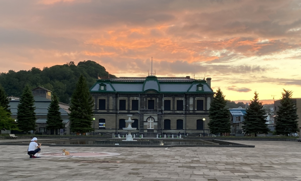 Turn your back toward the sea, walk and cross a road, go through the most popular tourist area with museums and restaurants in stone warehouses along Otaru Canal.