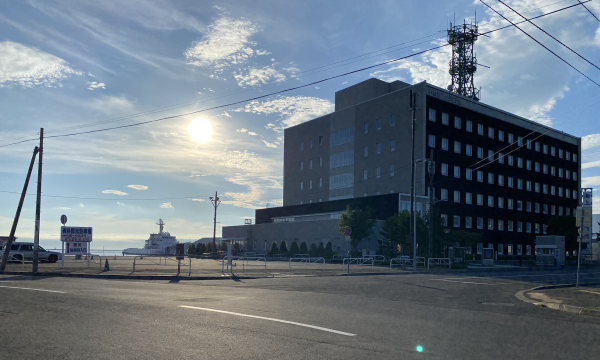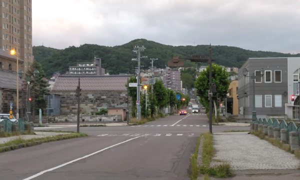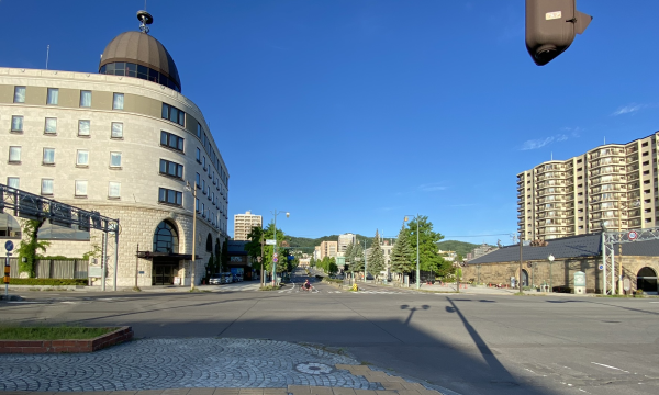 The tall building with antenna tower behind it is Otaru Regional Joint Government Building.