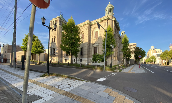 Go over the Otaru Canal, cross a road, and go straight on Nichigin Street. You will see solid buildings stand along the street.