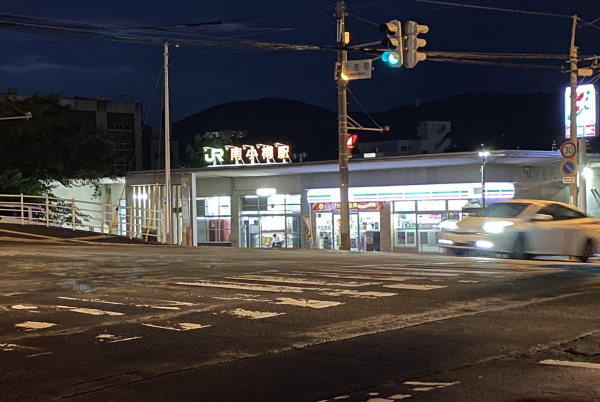 Walk with the sea on your left. Turn right at the intersection by Seven-Eleven(a convenience store).