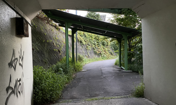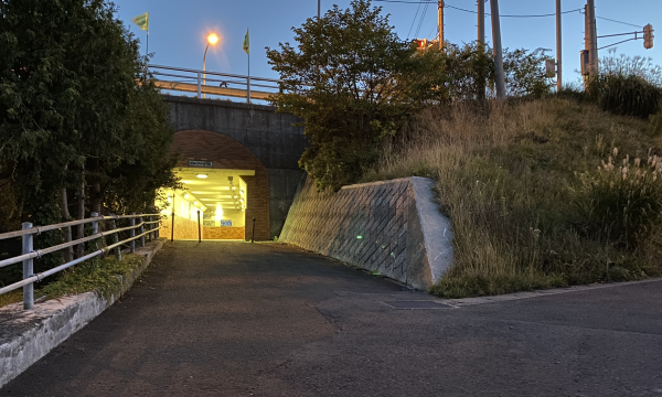 Go through the underpass.