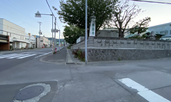Cross a road at the next crosswalk, and go up the road by "長昌寺:Tyoshoji Temple”.